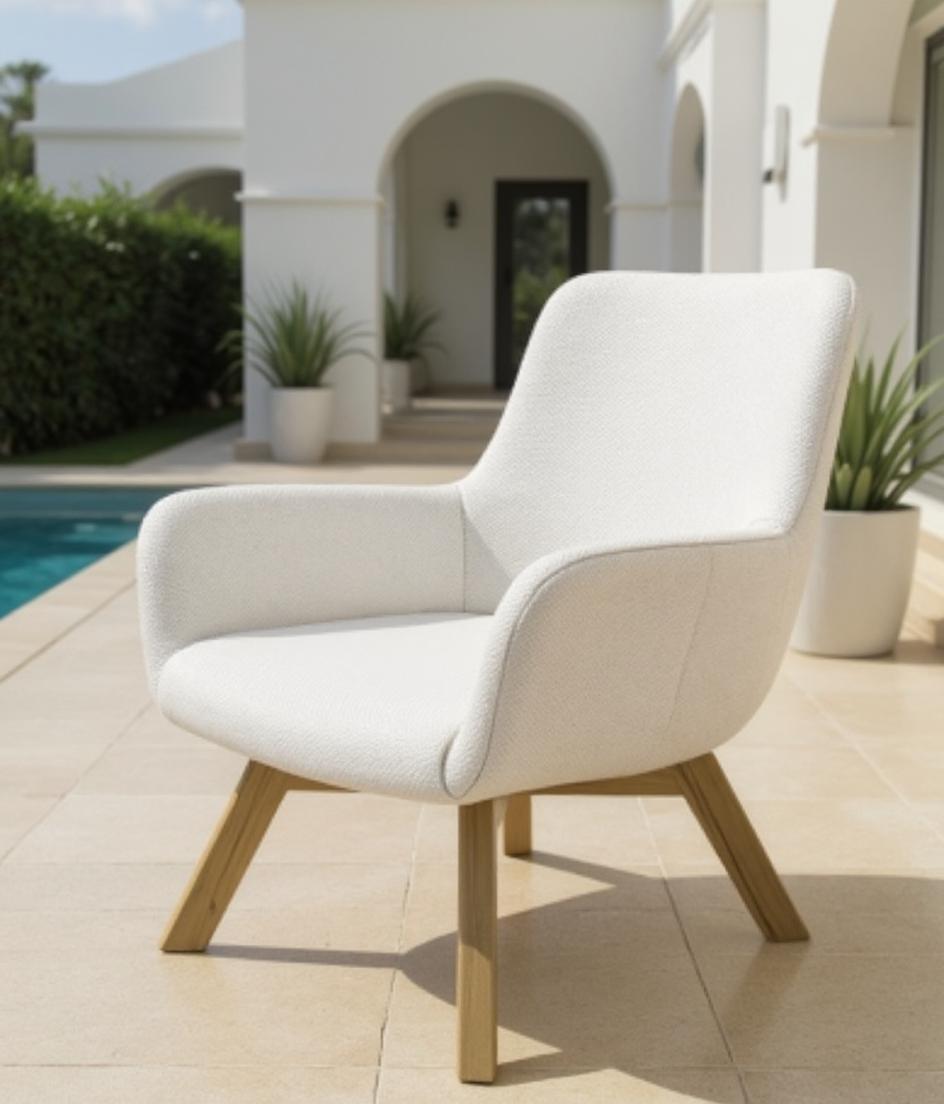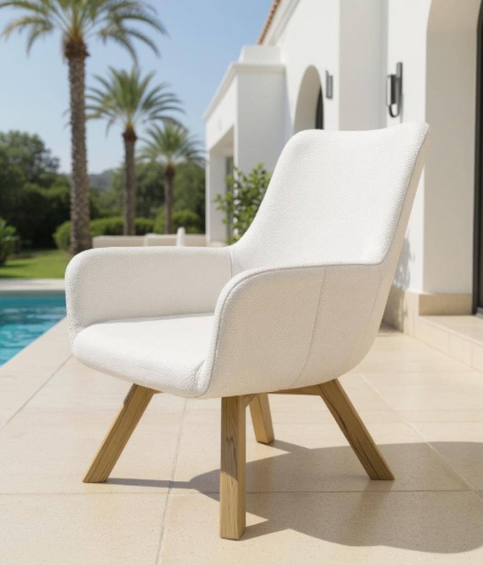 El modelo Duna Ice conserva la elegancia y comodidad del sillón original Duna, con un tejido técnico gris claro de textura trenzada que resalta bajo la luz natural. Su respaldo alto y curvo proporciona un apoyo envolvente, ideal para momentos de relax o como silla de comedor exterior. La base cruzada en madera tratada garantiza durabilidad y un diseño equilibrado. Perfecto para villas blancas, terrazas de lujo o zonas chill-out junto a la piscina. Resistente al sol, la humedad y fácil de limpiar con agua a presión, Duna Ice aporta frescura y estilo mediterráneo contemporáneo.