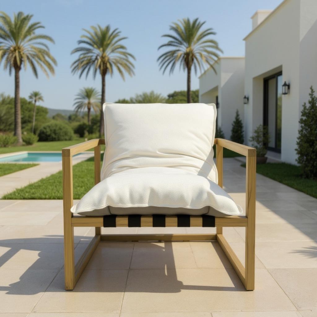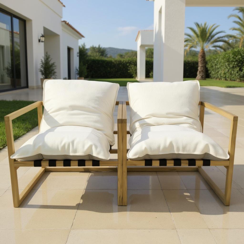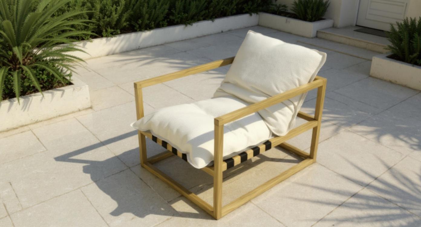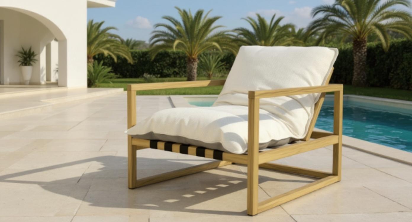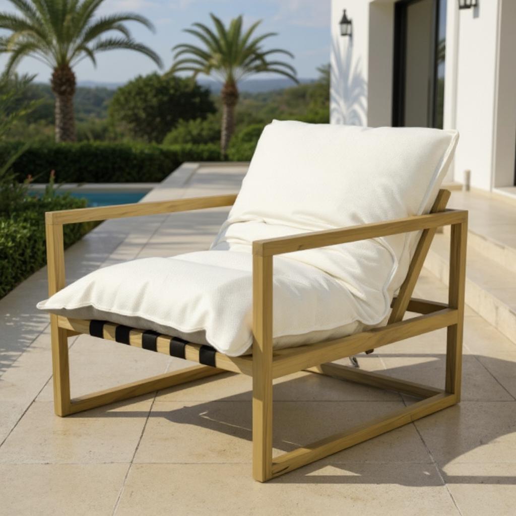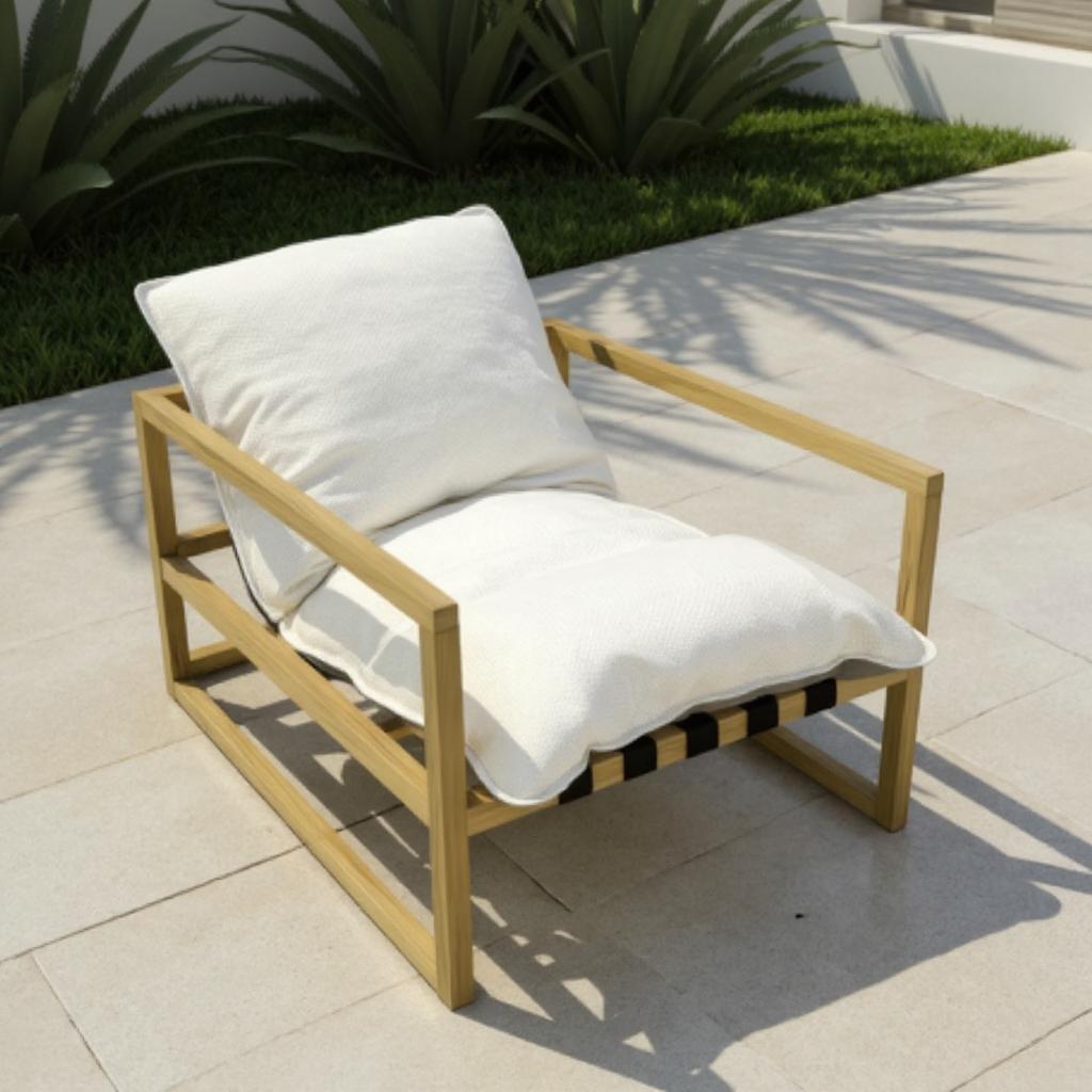 Kanso Vanilla sillón exterior en madera con cojines color vainilla