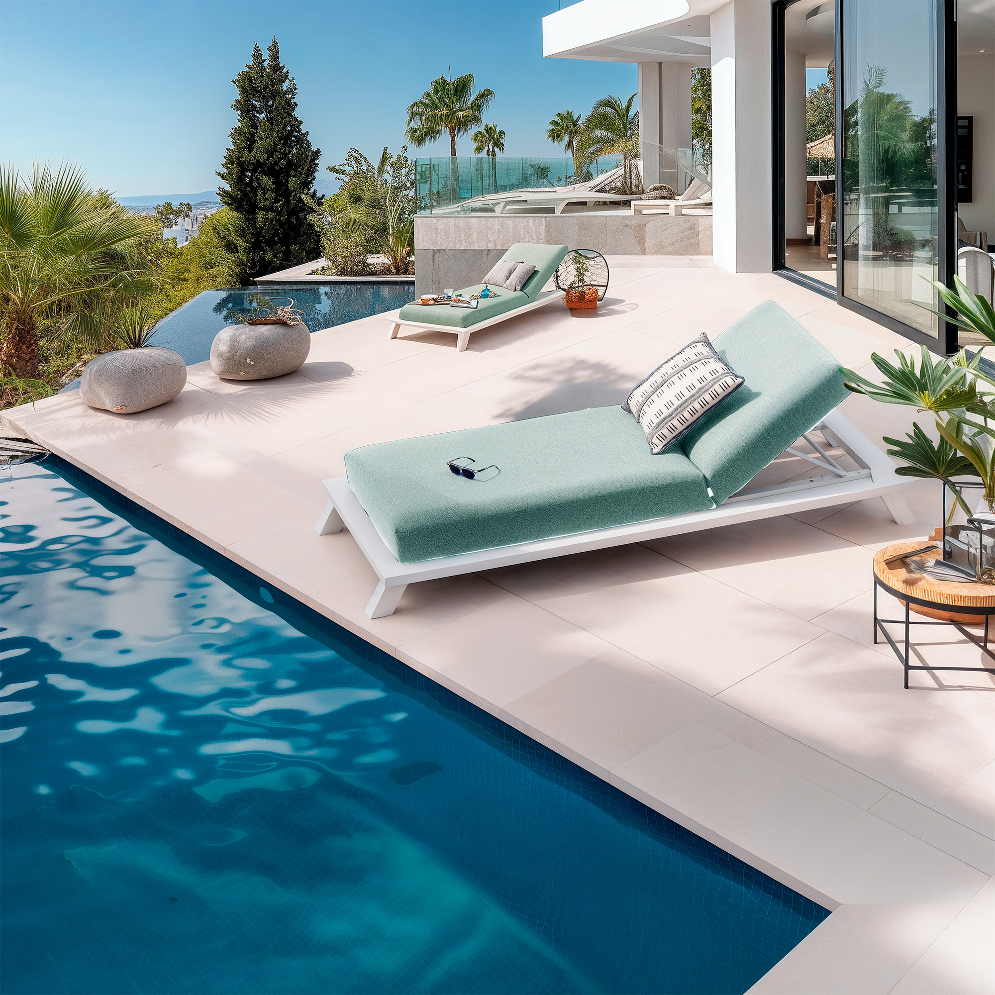 Tumbona lake side confortable, elegante y moderna. Resistente al Sol, la Lluvia, Lavable a Alta Presión